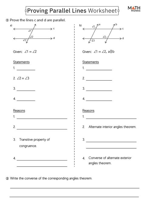 Prove Lines Parallel Worksheets. With this set of classwork and homework assignments, your students will learn how to prove that “when. Perpendicular lines are those that cross at a straight angle of 90 degrees.if two lines have a third line crossing them, it is.