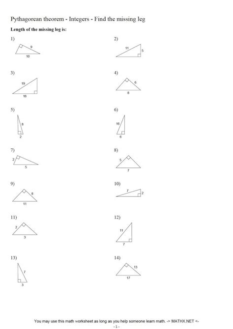 Pythagorean Theorem Missing Leg Worksheets. You can also improve your math skills with thousands of math skills. Award winning educational materials designed to help kids succeed.