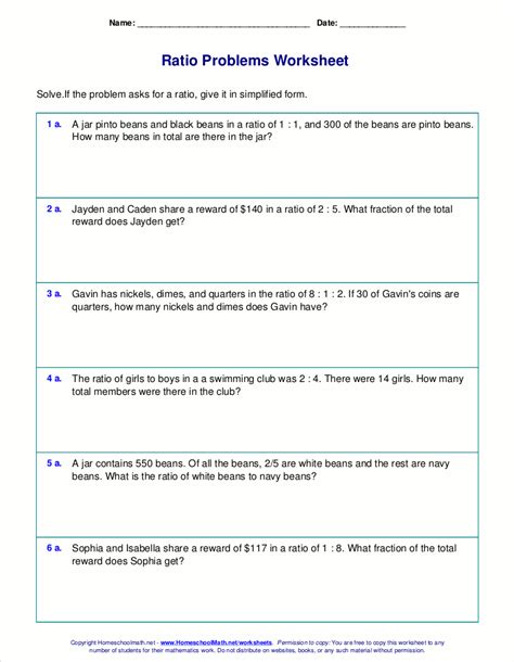 Free worksheets for ratio word problems from www.homeschoolmath.net