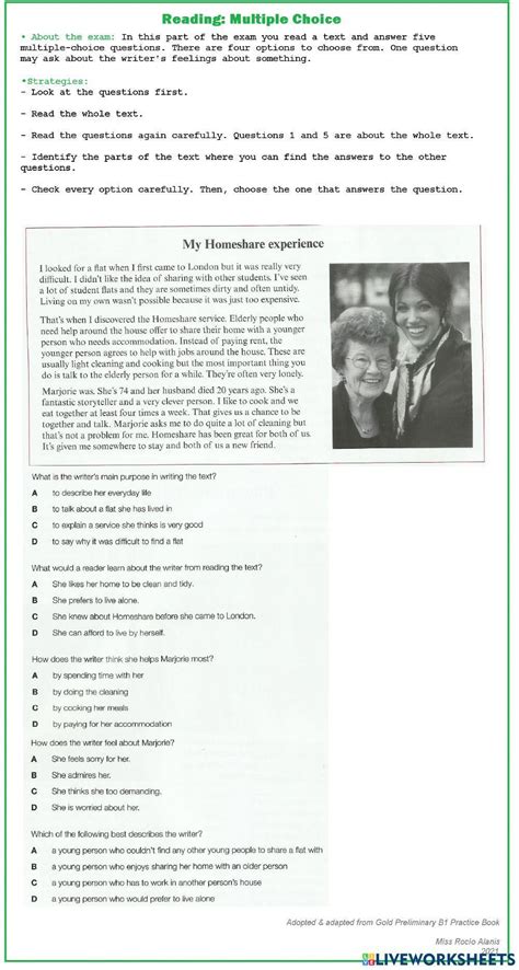 4º, 5º, 6º primaria age: B1 pet multiple choice reading. Test your understanding by reading through short passages of text and then answering a number.