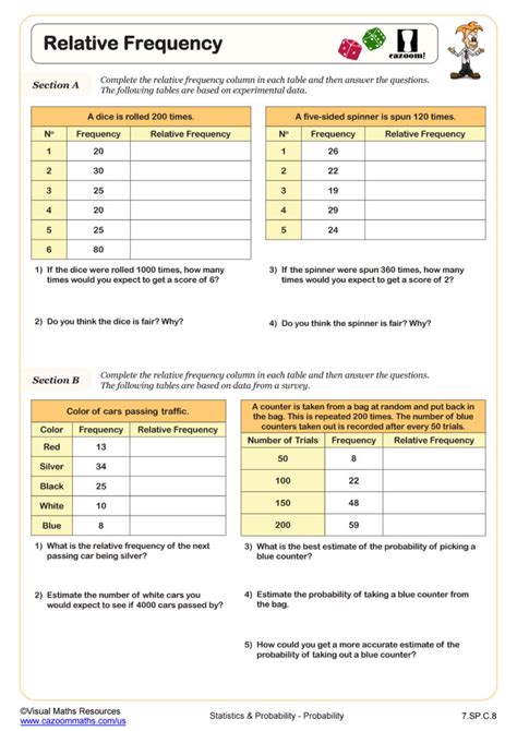 Web relative frequency tables online worksheet for 7. They have kindly allowed me to create 3 editable. Web relative frequency interactive and downloadable worksheets.