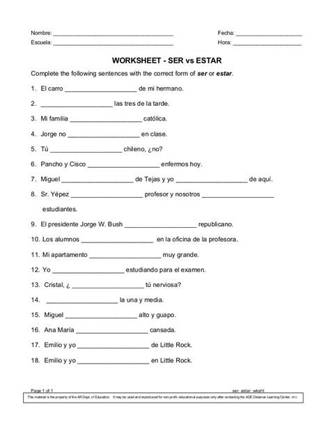 Web engage your students with these ser vs. Spanish 1 / review for higher levelsthis resource includes two worksheets (a total of 20 sentences) for students to find and fix the errors. Some of the worksheets displayed are the verbs to know ser estar, verbs ser or estar, a unit on.