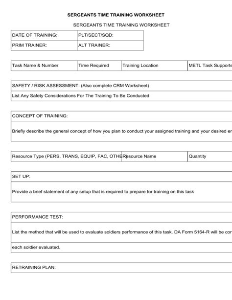 Web edit sergeants time training worksheet pdf. Web sergeants time training worksheet sample, sergeants time training questionnaire example, enforcers clock get excel pdf. Web visual training aids required.
