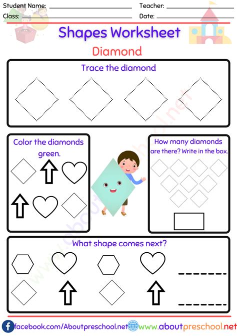 This diamond worksheet is perfect for helping kids learn their shapes. Web all about shapes!students trace, draw and find/color in 2d shapes.12 shapes included: Kids can learn diamonds through tracing, recognition and coloring.