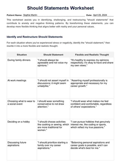 On this page, we will provide you with a should statements worksheet which will help you learn not to use a should statement in your. Web examples of should statements “i should be able to handle this problem.” “i ought to know better!” “i must get everything done by tonight.” “you ought to be more in. Web these types of statements become unhelpful when you use should and must statements to put unreasonable demands or pressure on yourself.