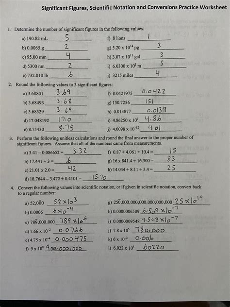 Significant Figures And Scientific Notation Worksheets Answer Key