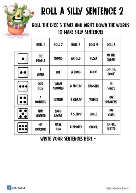 4 silly sentence worksheets ESL Vault from eslvault.com