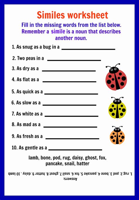 The first exercise is using pictures as the guide for the students to answer the questions. Web simile worksheets to print: Web this worksheet has 20 examples of simile and metaphor.