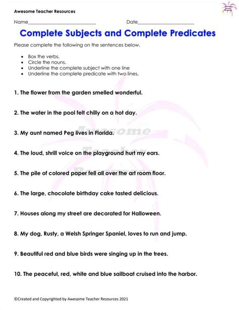Simple And Complete Predicate Worksheets. A complete sentence contains a subject and predicate. The subject, on the other hand, is noun or pronoun that appears within.