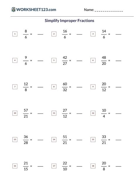 Simplifying Improper Fractions Worksheets. Convert mixed numbers to improper fractions 1. Simplying fractions is a useful skill for students to learn as it makes working with.