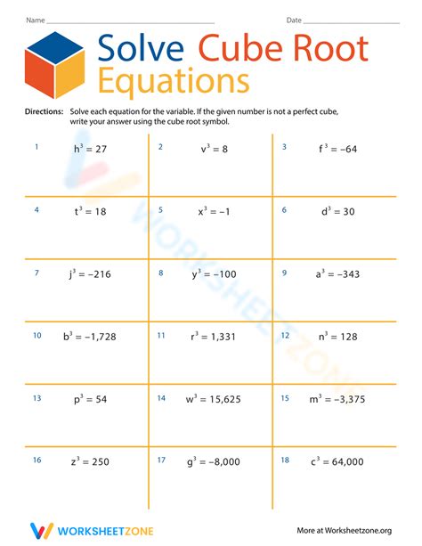 Negative 1 to the third power is negative 1. Web worksheet solving equations with cube roots. This activity is designed to help students find the length of the edge of a cube given volume, determine the volume given one.