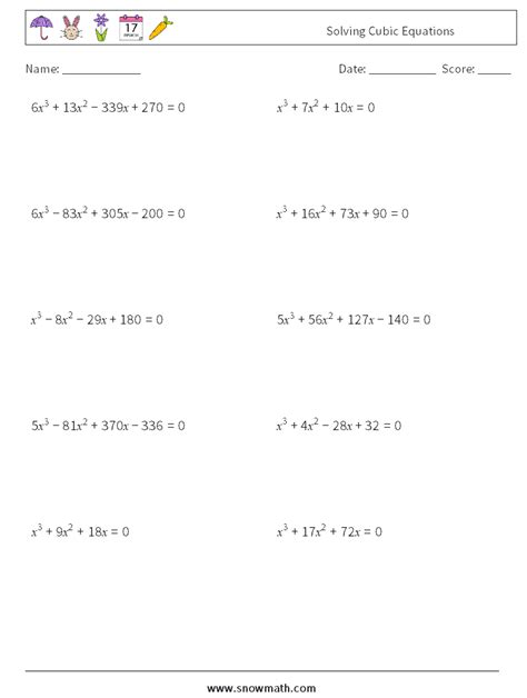 Solving Cubic Equations Math Worksheets 2.