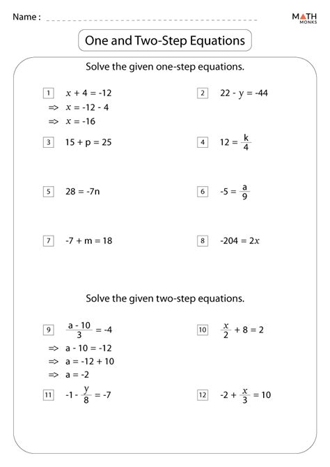 One And Two Step Equations Worksheets Will Help Students In Identifying, Writing, Comparing, And Calculating Fractions.these.