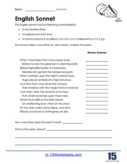 Sonnet Worksheets. It concludes with a rhyming couplet, which is two lines that. Worksheets are name write your own shakespearean sonnet work, name the shakespearean sonnet sonnet 18,.