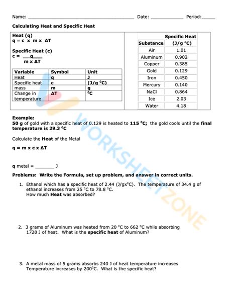 Specific Heat Worksheet Answer Key from zipworksheet.com