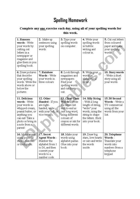 Spelling Homework Worksheets. Whether you are using a list of spelling words,. These are perfect for practising weekly spellings and rules.
