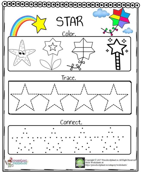 Star Shape Worksheet Color, Trace, Connect, & Draw! in 2021 Shapes from www.pinterest.com