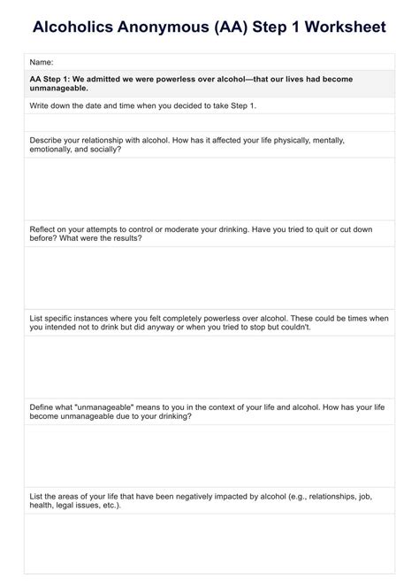 Web Step 1 Alcoholics Anonymous (Aa) Worksheet And Guide.