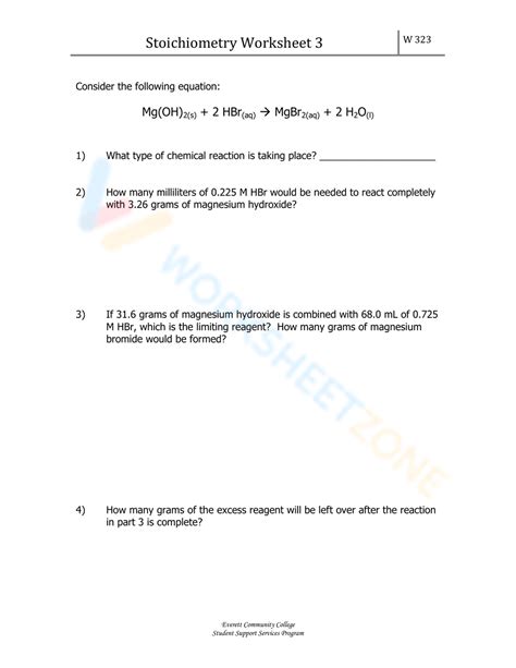 Honors Chemistry Worksheet 3 Stoichiometry Practice Problems from studylib.net